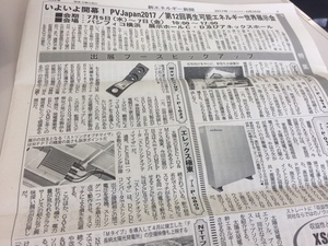 6月26日付の新エネルギー新聞に今回出展させていただく【PVJapan2017】について記事が掲載されました。